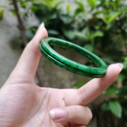 💎💚 This green jadeite jade bangle bracelet features a semi-translucent glow and a timeless vintage design. Crafted from natural jadeite, it symbolizes wealth, health, and prosperity, making it a meaningful gift for mothers, sisters, grandmothers, or men who appreciate classic gemstone jewelry.