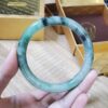 💎💚 This green jadeite jade bangle bracelet features a semi-translucent glow and a timeless vintage design. Crafted from natural jadeite, it symbolizes wealth, health, and prosperity, making it a meaningful gift for mothers, sisters, grandmothers, or men who appreciate classic gemstone jewelry.