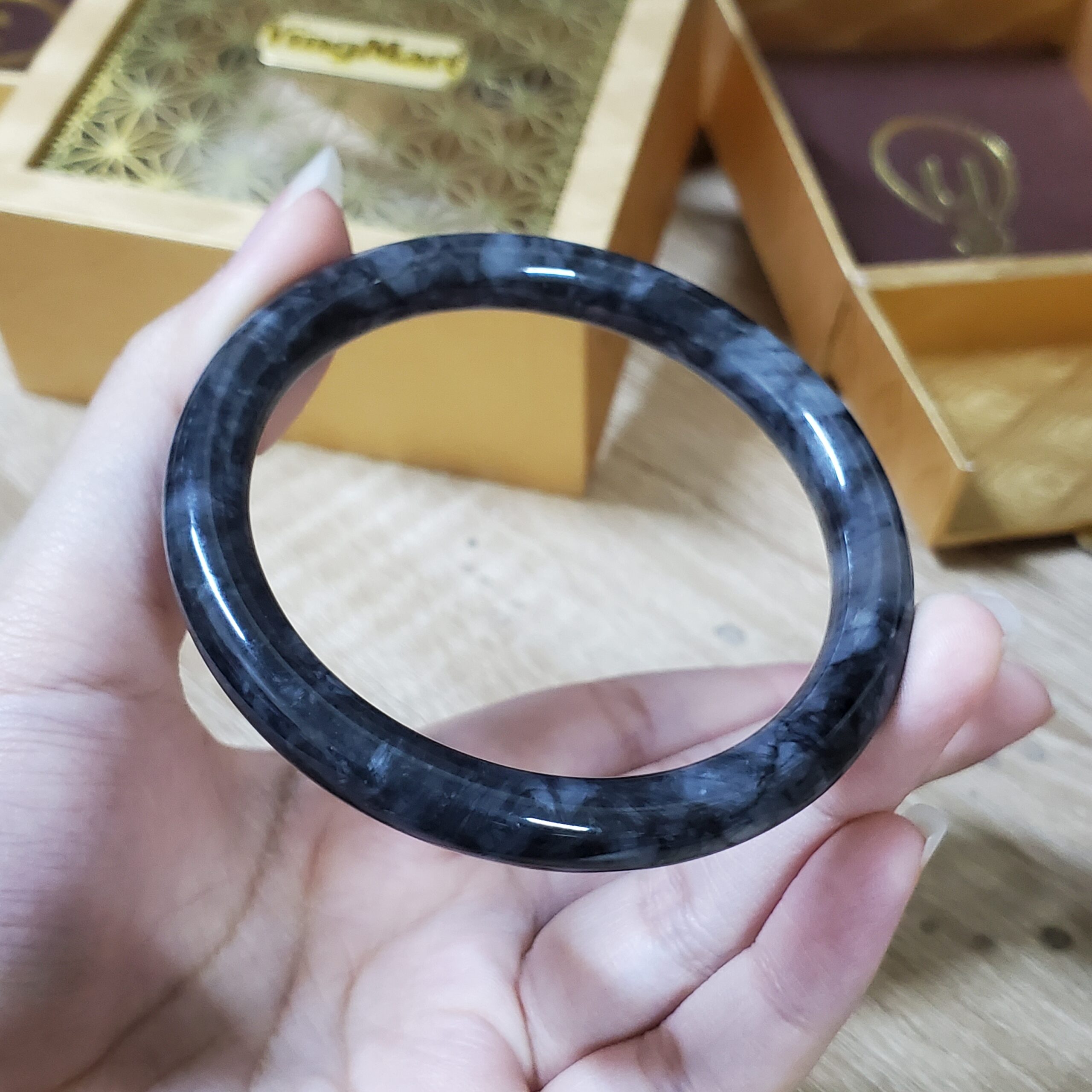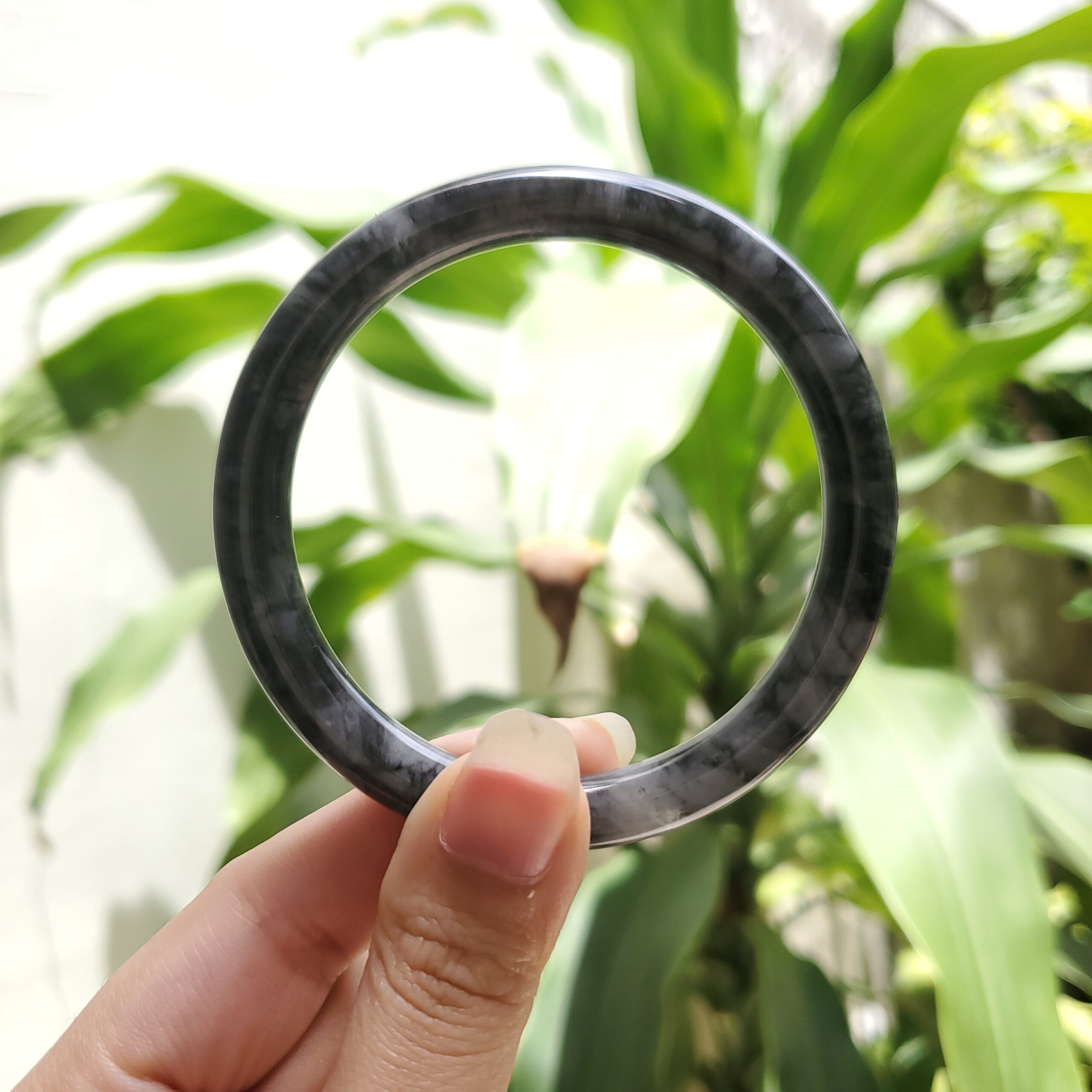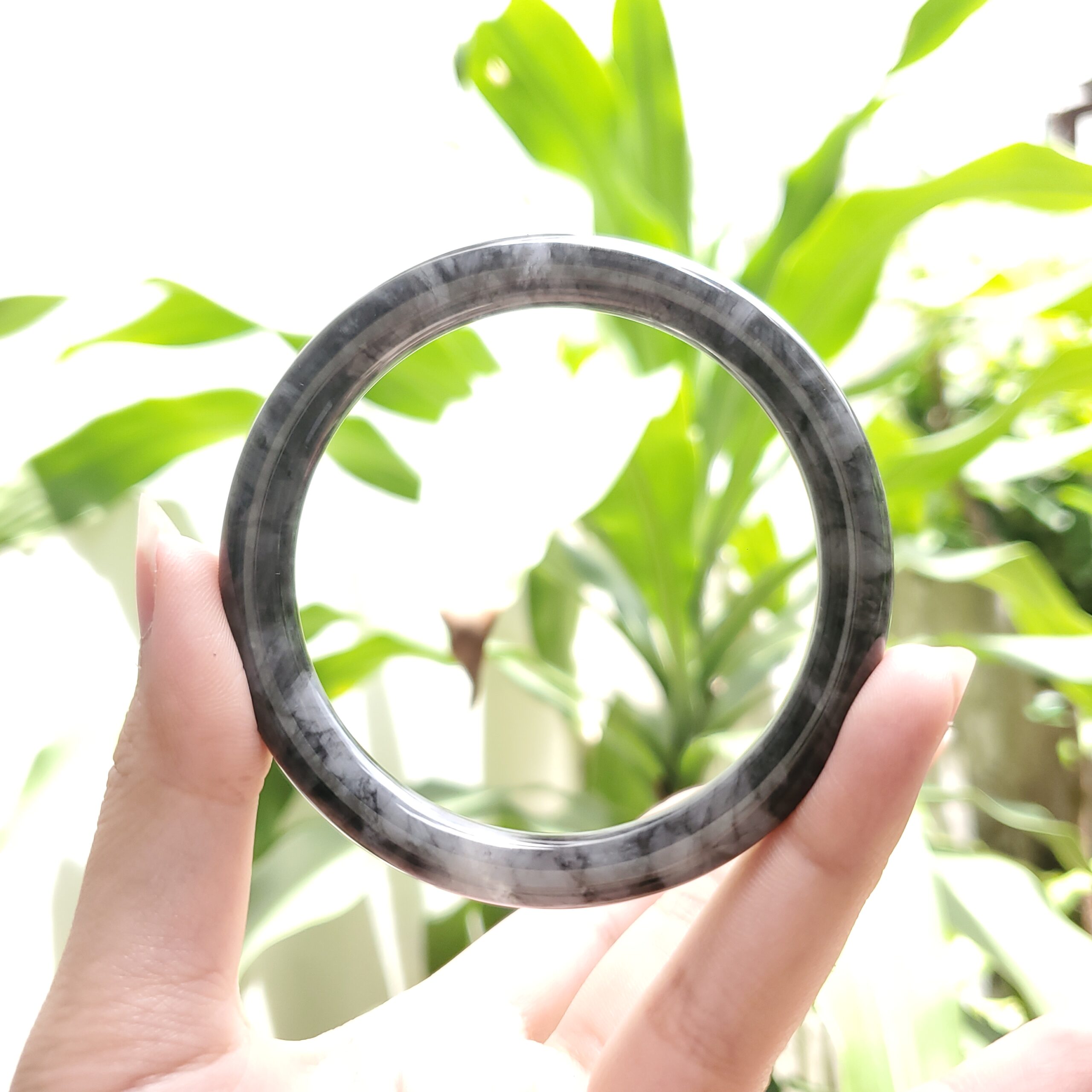 Grey White Black Jade Bangle JB024