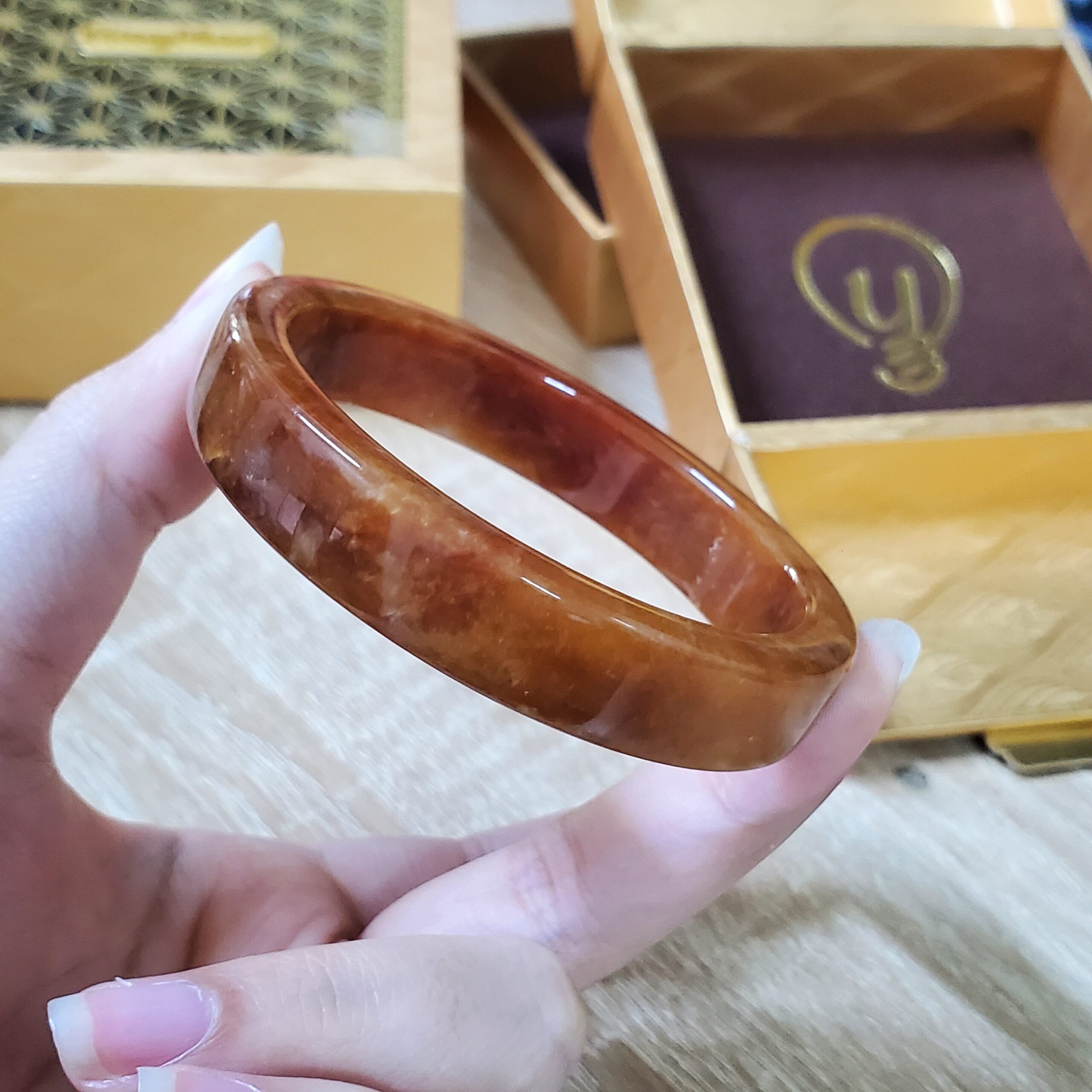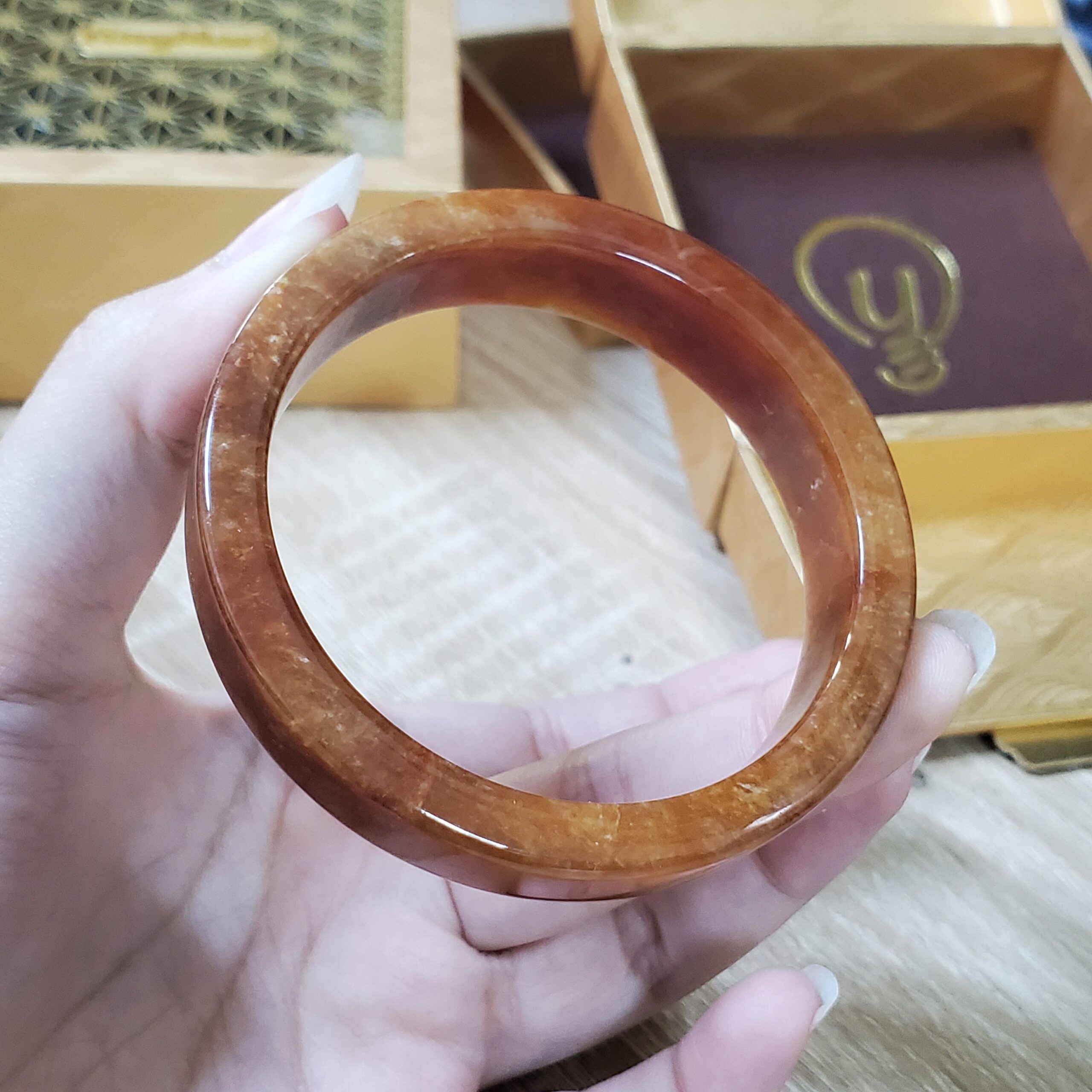Orange Jade Bangle JB071