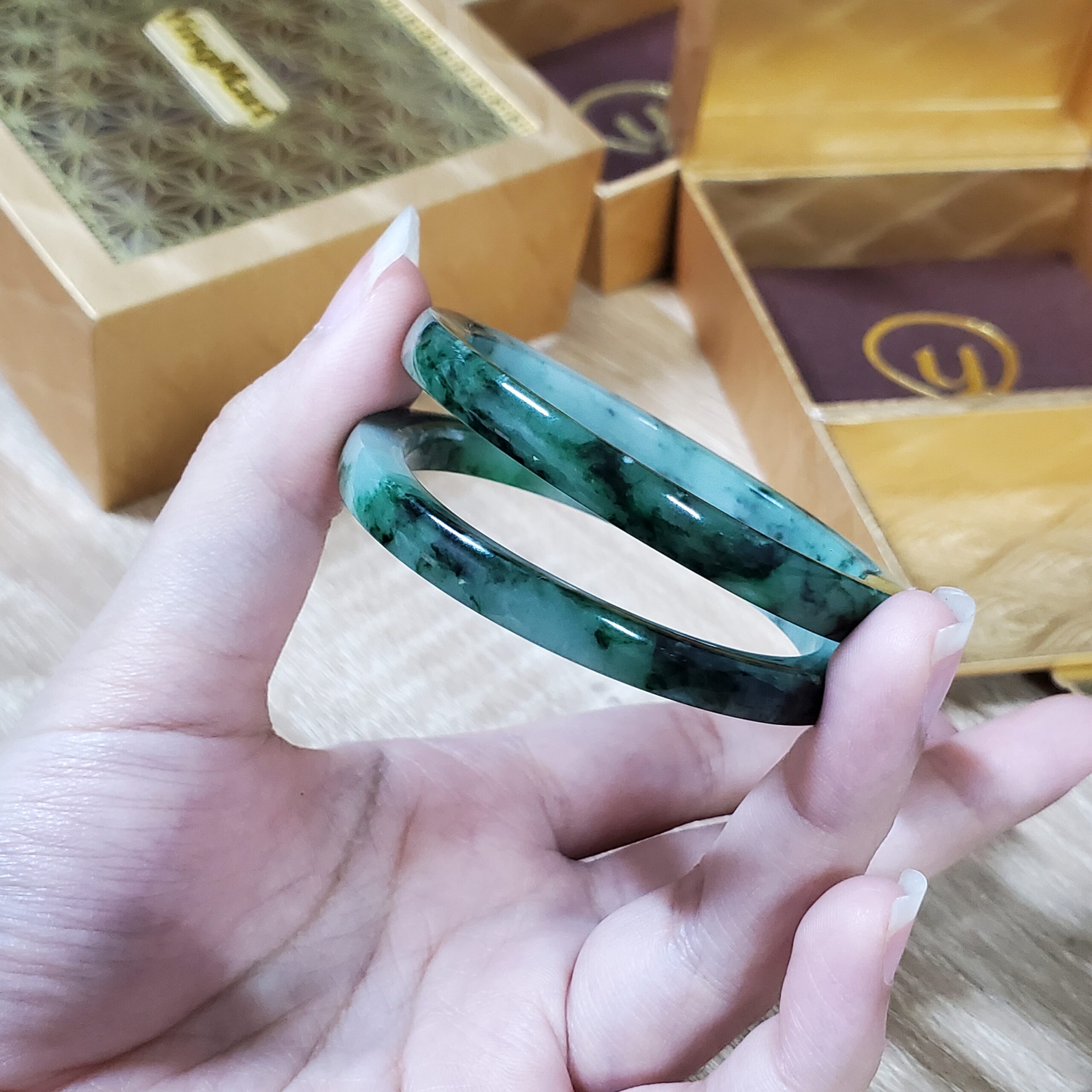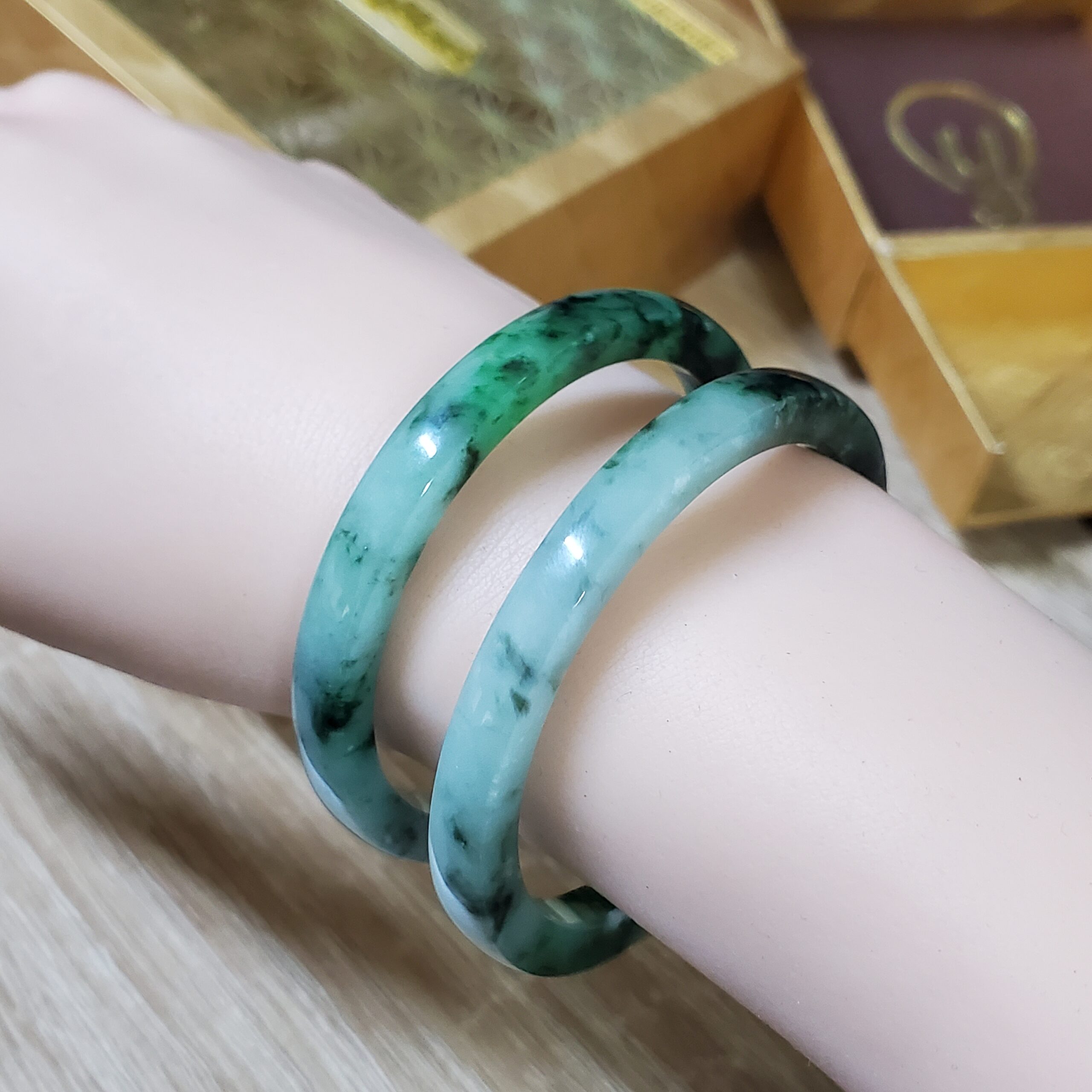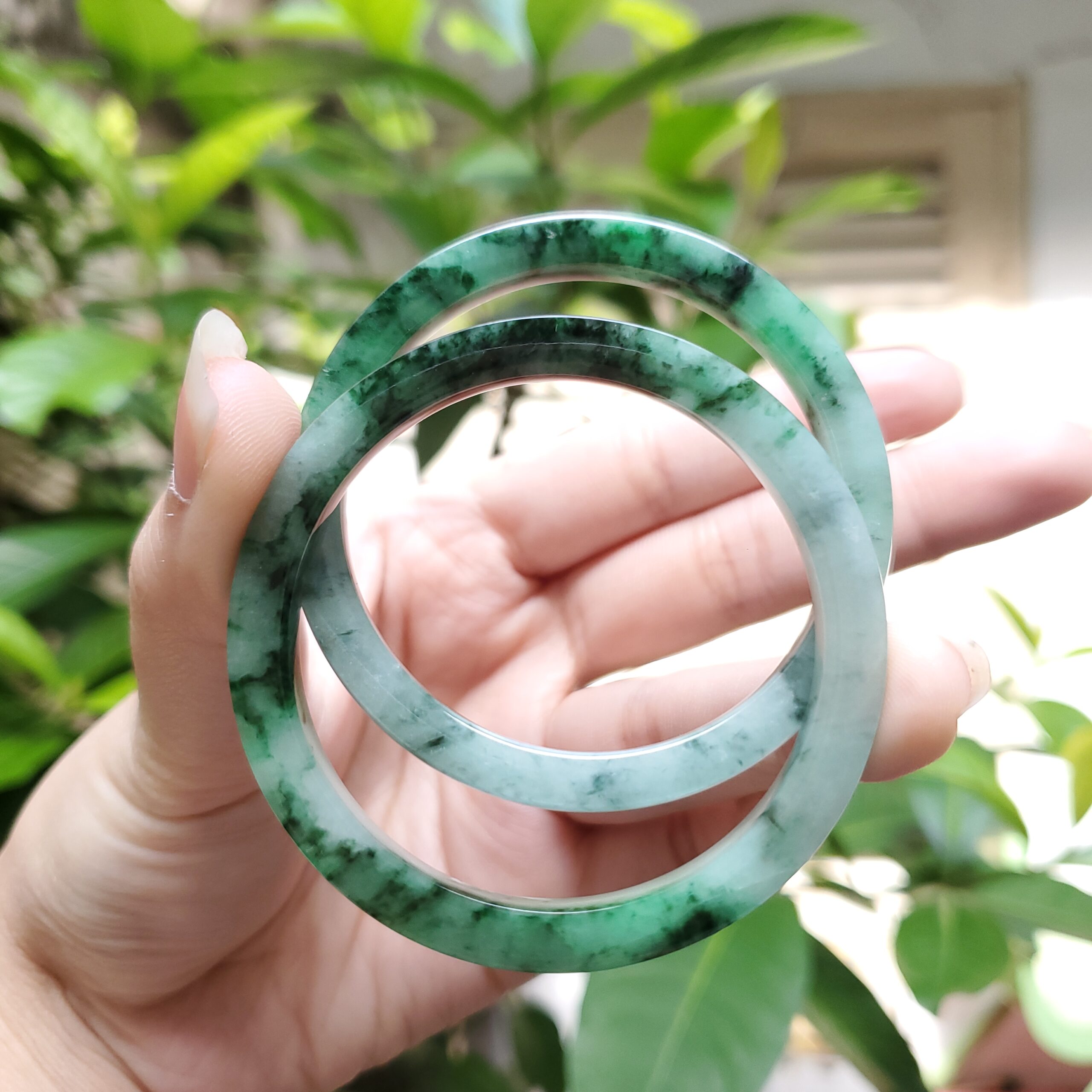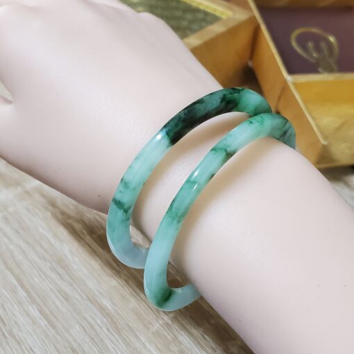 💎💚 This green jadeite jade bangle bracelet features a semi-translucent glow and a timeless vintage design. Crafted from natural jadeite, it symbolizes wealth, health, and prosperity, making it a meaningful gift for mothers, sisters, grandmothers, or men who appreciate classic gemstone jewelry.