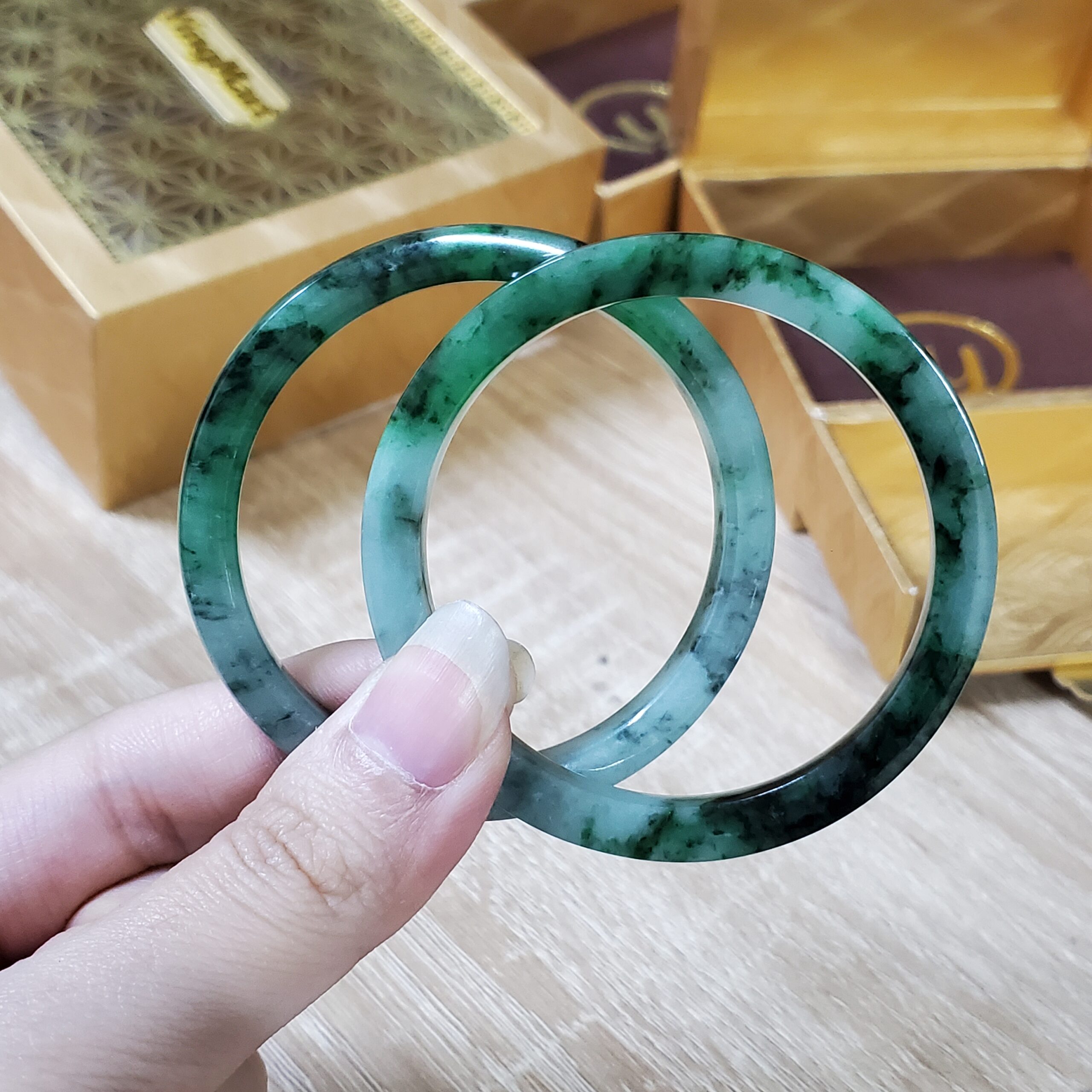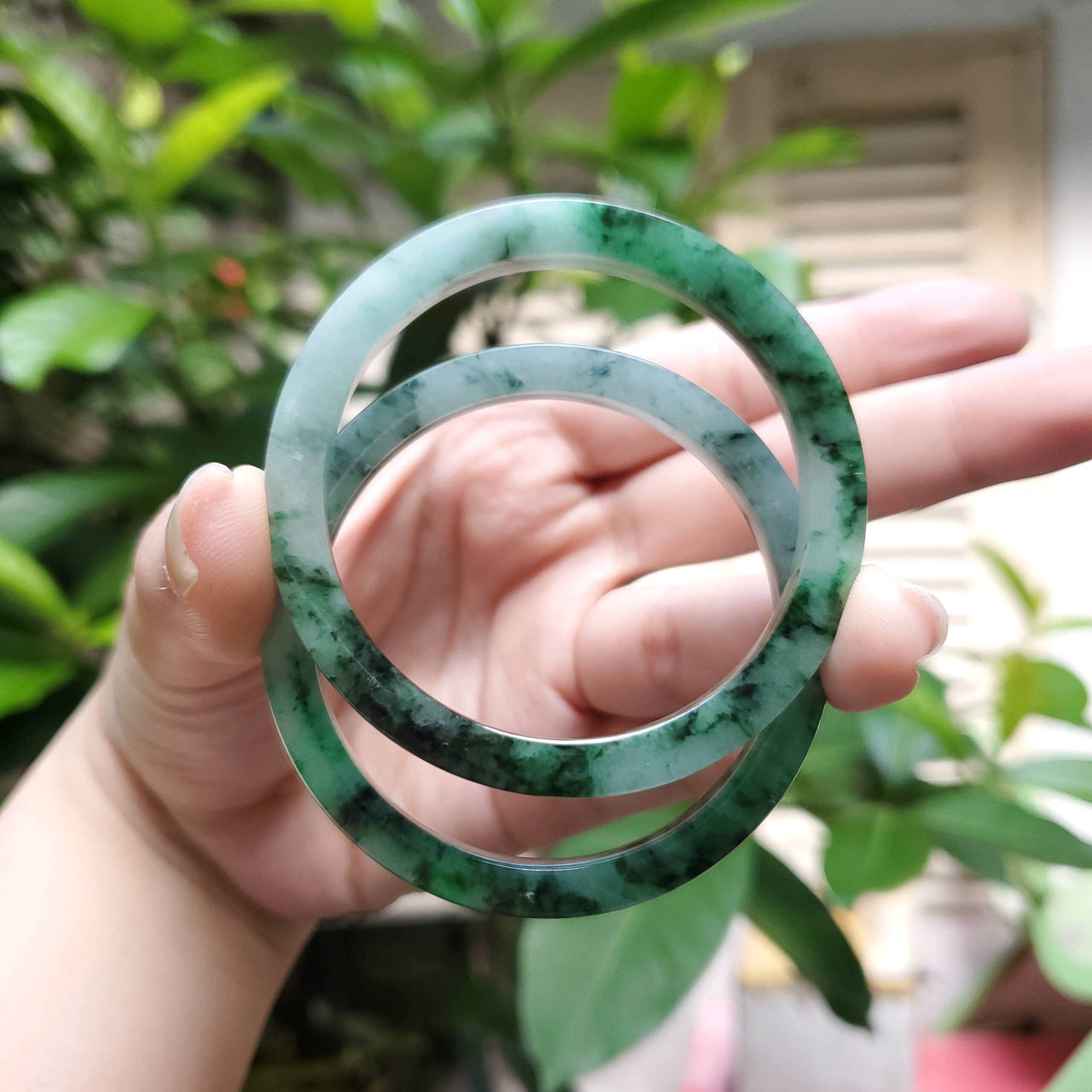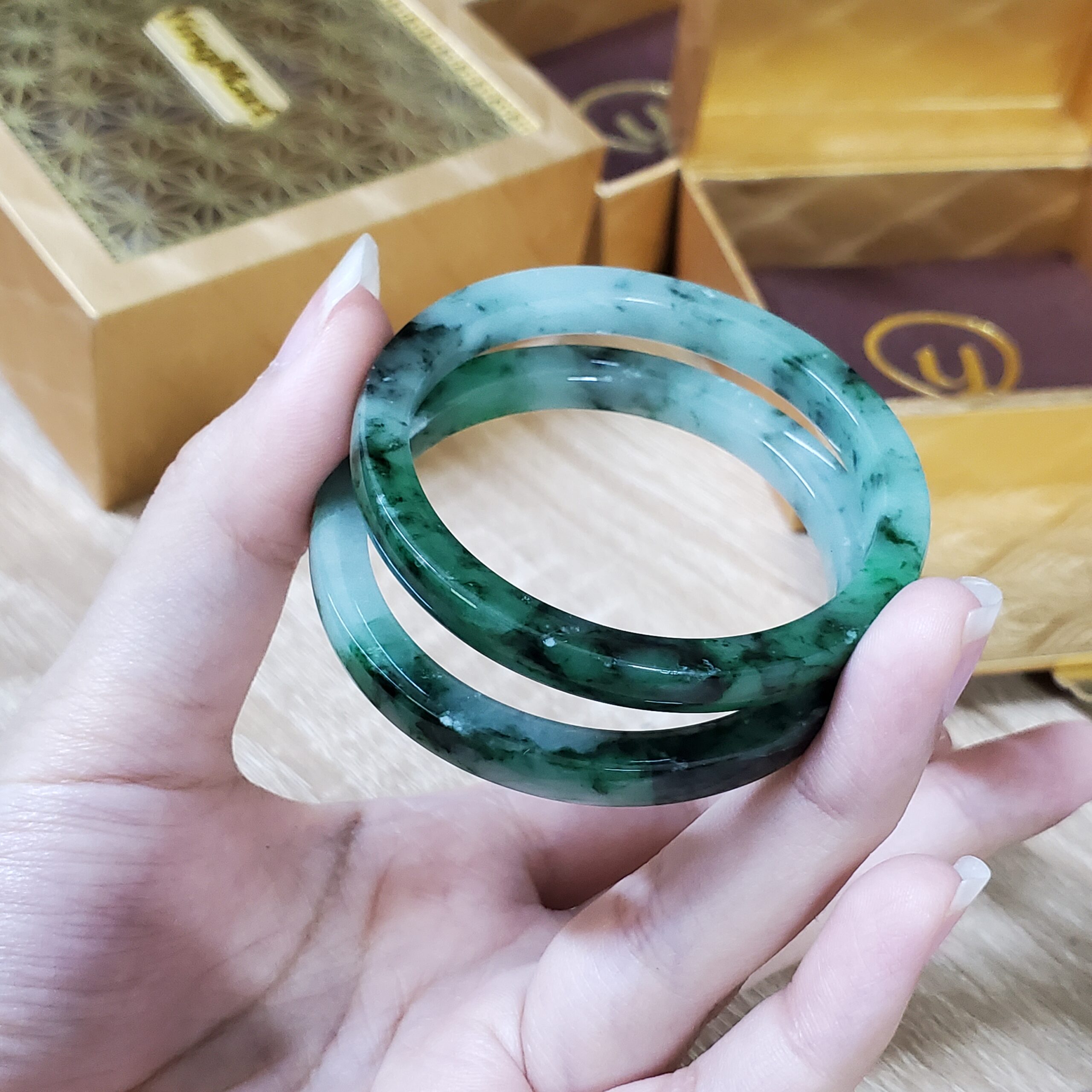 💎💚 This green jadeite jade bangle bracelet features a semi-translucent glow and a timeless vintage design. Crafted from natural jadeite, it symbolizes wealth, health, and prosperity, making it a meaningful gift for mothers, sisters, grandmothers, or men who appreciate classic gemstone jewelry.