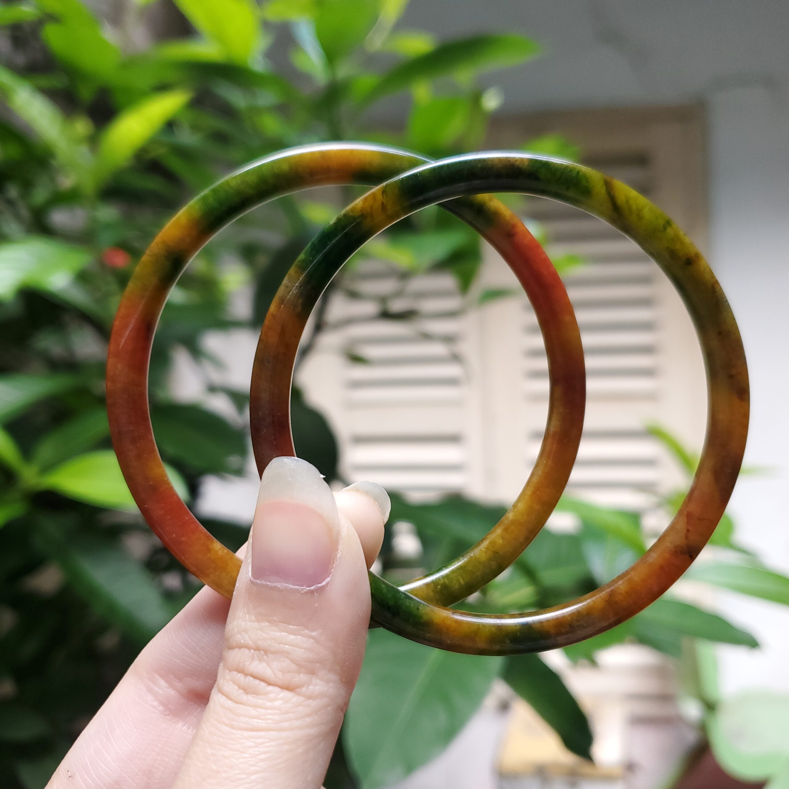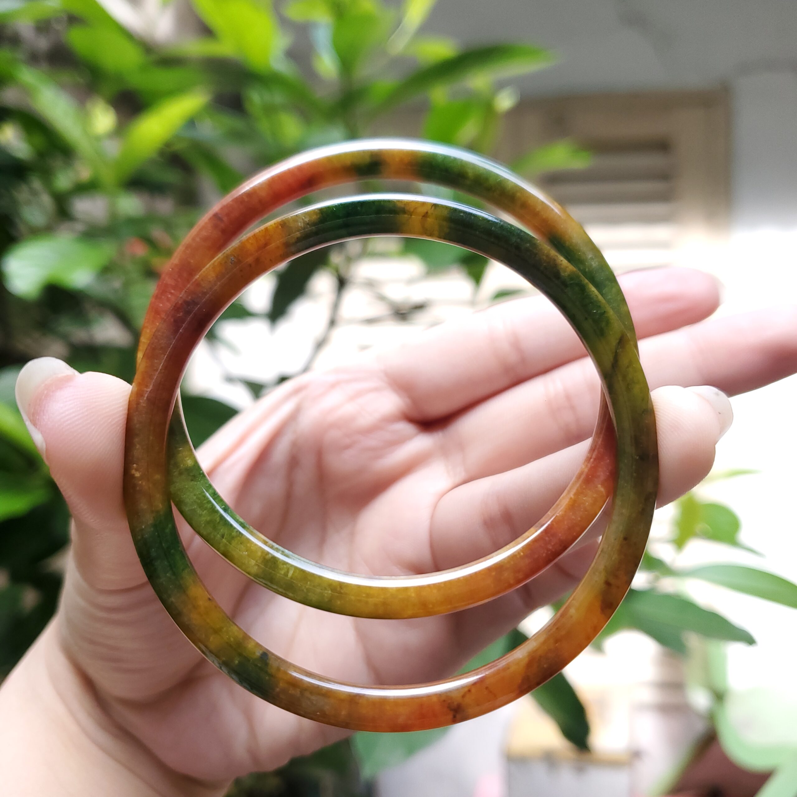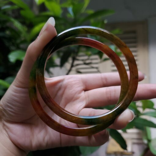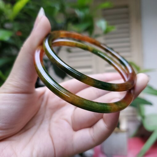 Yellow Green Black Brown Jade Bangle JB058