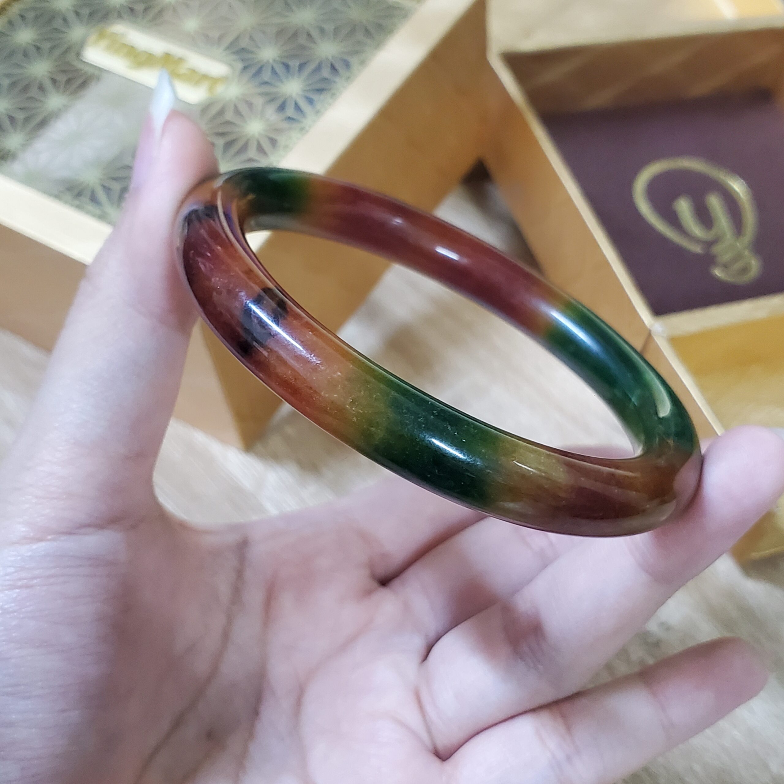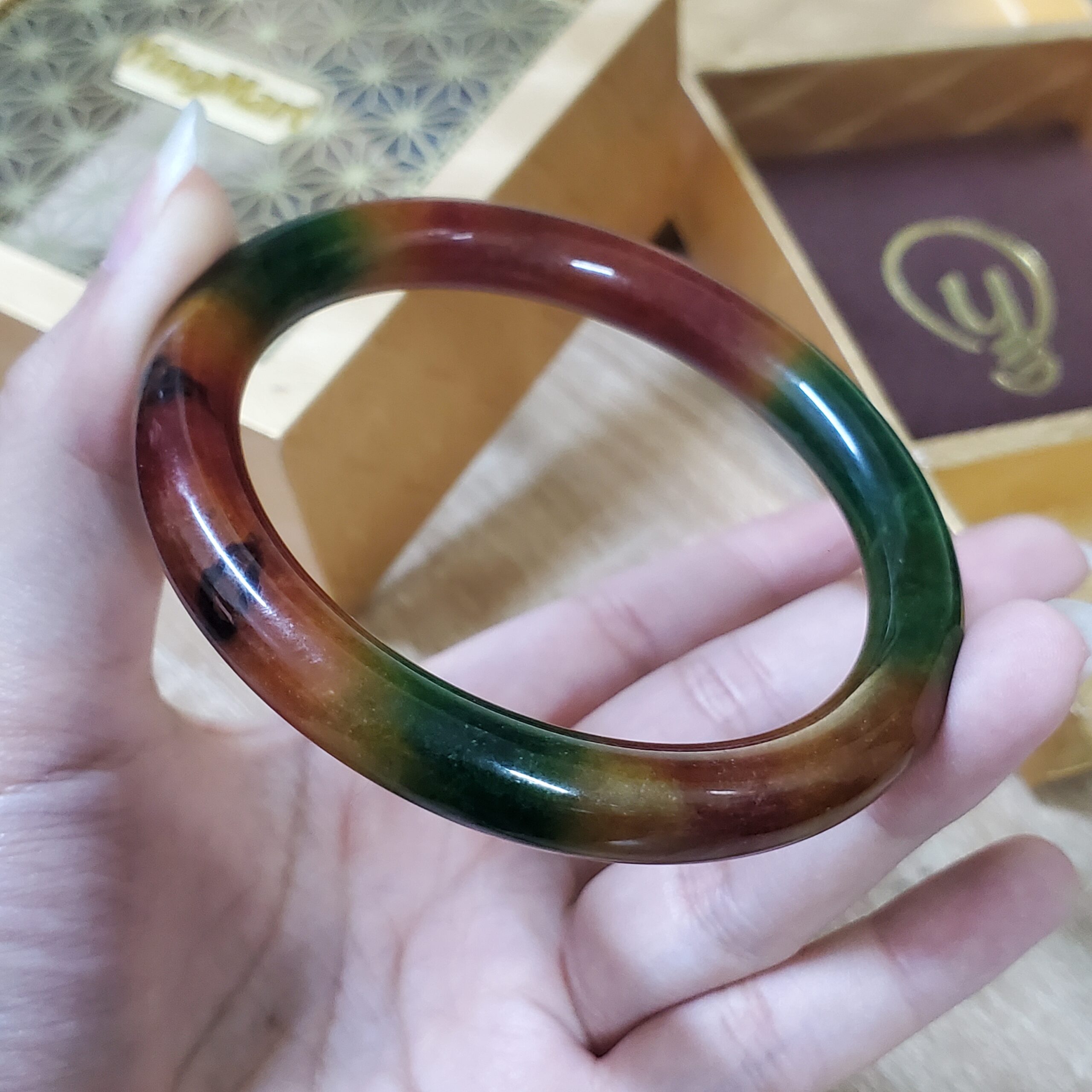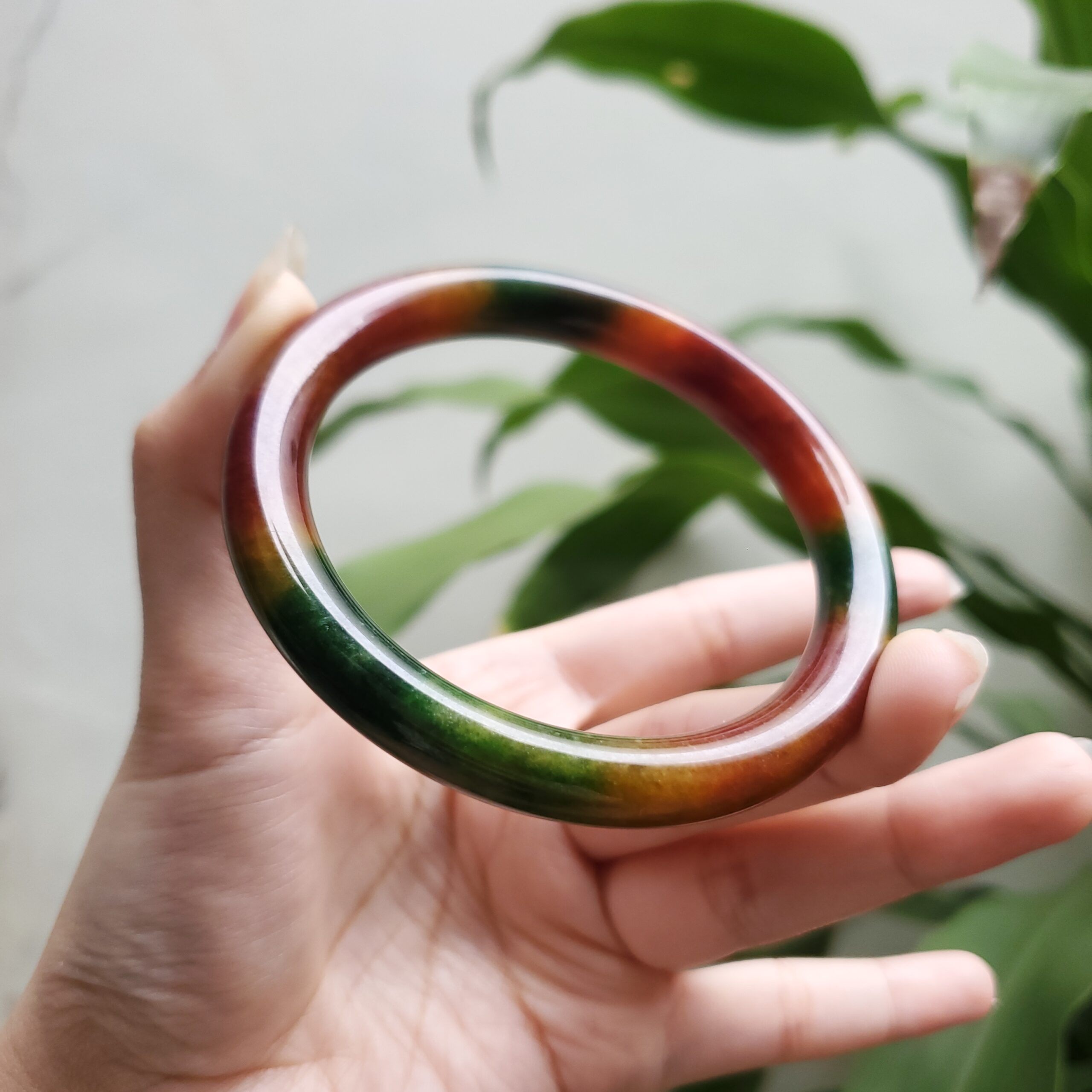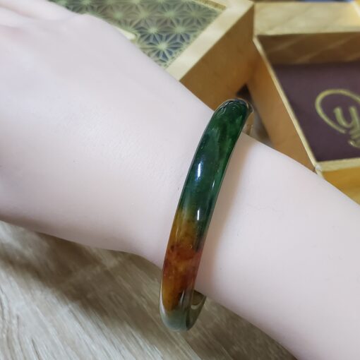 Yellow Green Black Brown Jade Bangle JB082